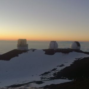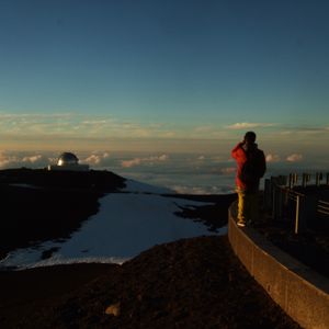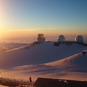 数年ぶりに山頂に1メートル近い積雪があり、前日まで山頂付近には入山ができなかったが、ツアーの当日から入山が可能になるという幸運。しかも冬としては穏やかな日になりました。積雪で一面の雪景色の山頂ではスノーボードを楽しむ猛者もチラホラ。遠くマウイ島も見える山頂から刻一刻と表情を変える夕日が天文台の彼方に望むことができました。星空は言うまでもなく素晴らしく、次回に訪れる時には夏の天の川と星座を見たいです。