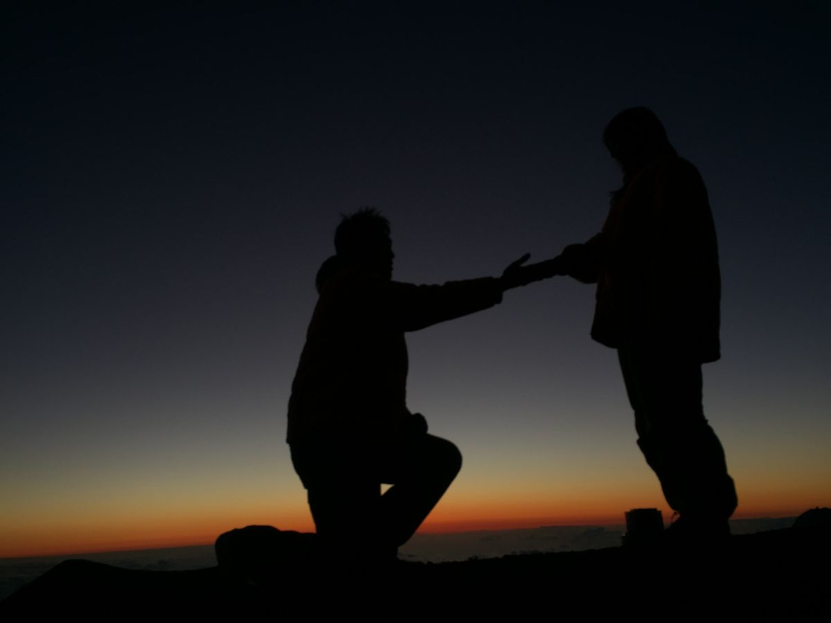 頂上は雲海を抜けたところにあり、おかげさまですばらしいサンセットを見ることができました。