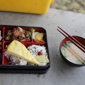 オニヅカセンターでいただいた「アメリカ人が作ったジャパニーズ弁当」(山本:話)もとてもおいしかった! ほかのツアーの方たちがインスタントで作っている「お味噌汁」が手作りだったのも嬉しかったです。