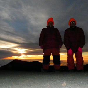 山頂で防寒着か貸し出して頂き変なオレンジ軍団の出来上がりでした。このツアー以外も防寒具の貸し出しがあるみたいですが、上下を貸し出して頂けるのはこのツアーだけみたい!