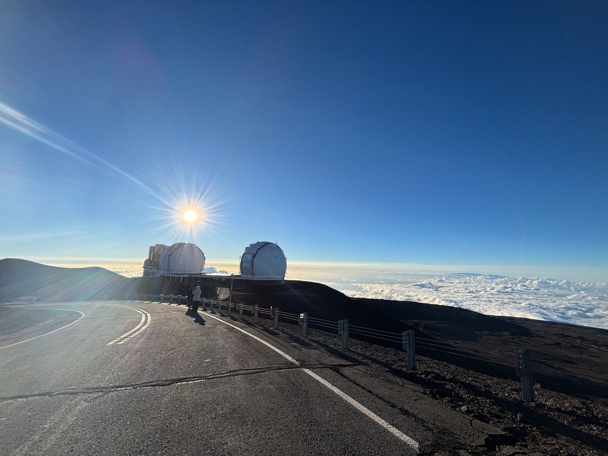 カイルアコナから出発して、しばらく行くと、大雨。サドルロードに入ってもあまり良い天気ではありませんでした。大丈夫かなと、思いながら着いたビジターセンターは曇りで、山頂は見えませんでした。「頂上の天気は違います」と言う、ガイドの翔洋さんの言葉を信じて、頂上へ向かいました。ある所(3000m位かな?)から、雲が切れて、快晴でした。パロマ天文台群を丁寧に説明して回ってくれました。そして、お待ちかねのサンセットです。風が強くて少し寒かったですが、最高の夕陽が見れました。日が暮れた後は、少し降りた所で、星空鑑賞でした。天の川もバッチリ見えました。土星🪐を天体望遠鏡で見れたのは良かったです。星座の説明は、日本語だったので、良くわかりました。本当に、楽しい体験、ありがとうございました。