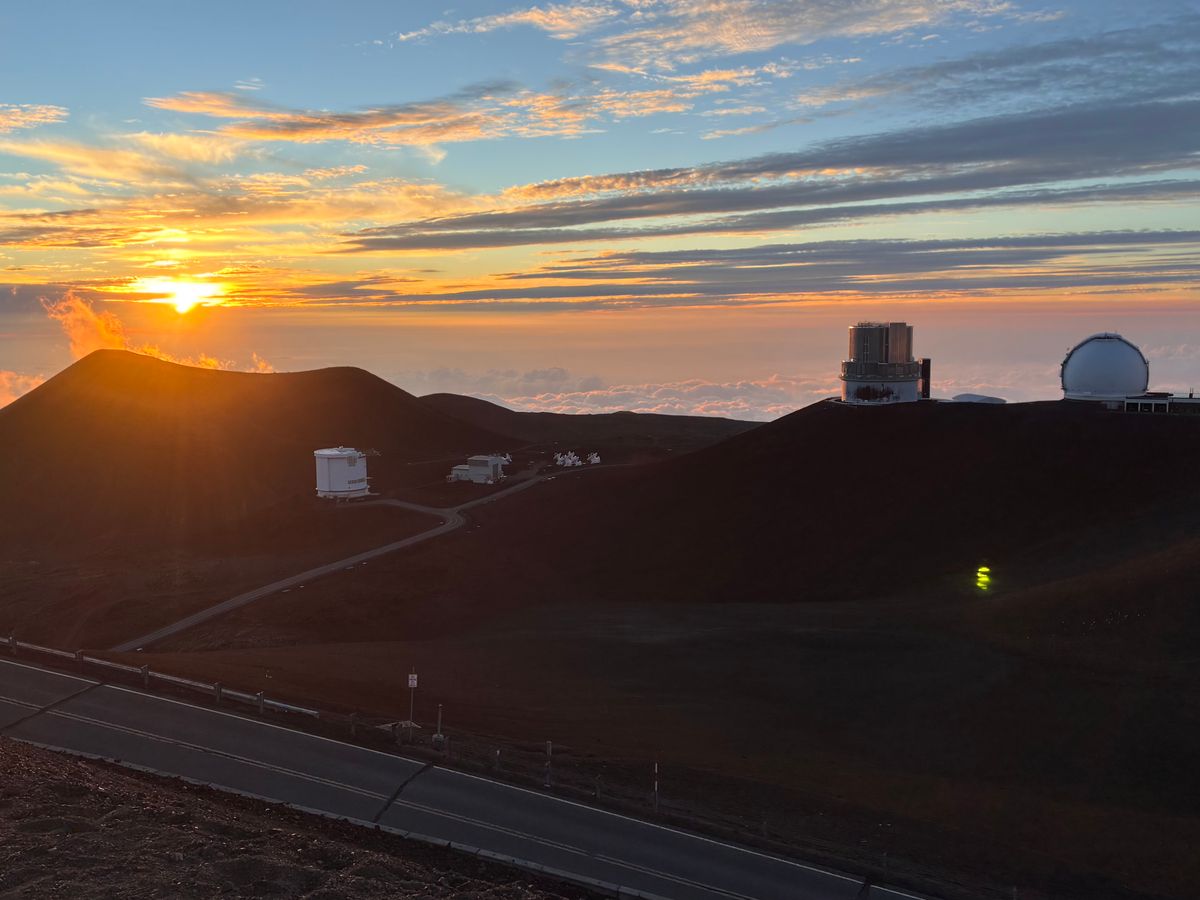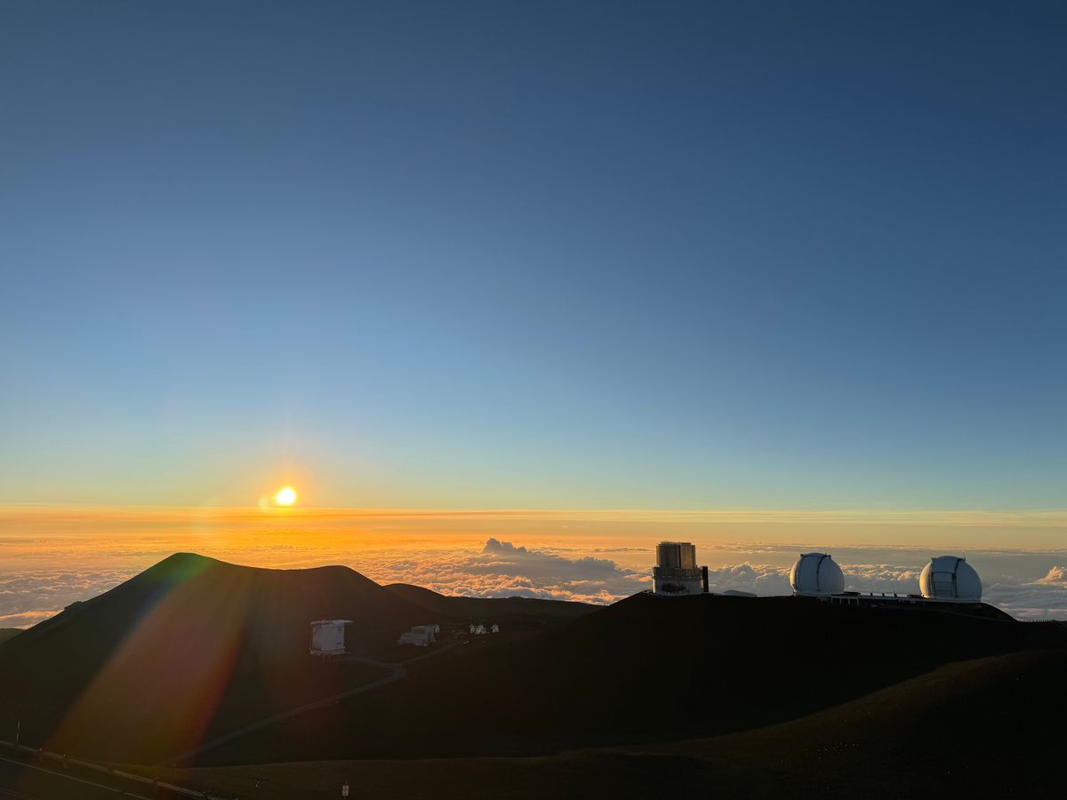 4000mを超える山頂にある各国の有名な天文台の建物が白色で映える中、それが夕日のオレンジ色に染まるところが息を呑むほど綺麗だと感じました。