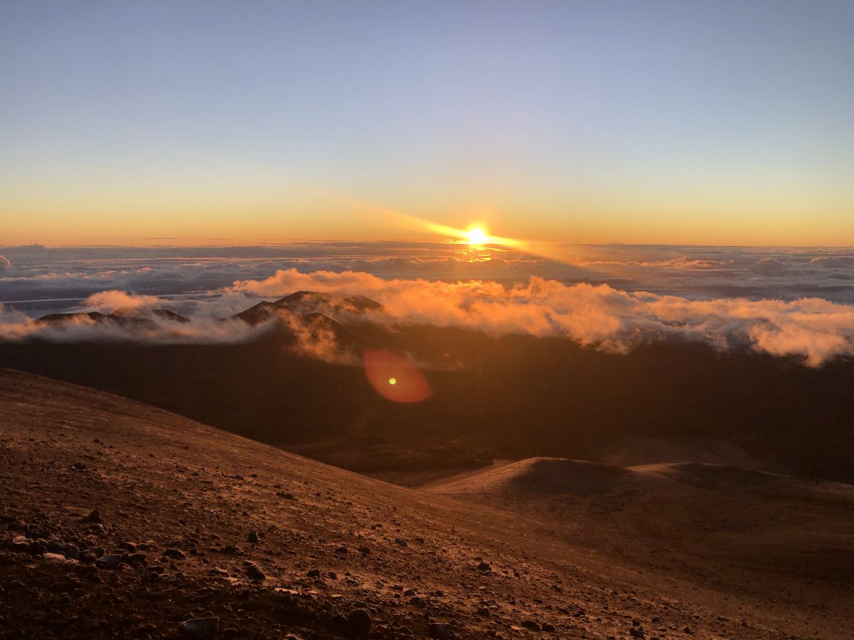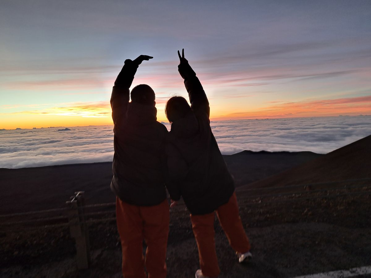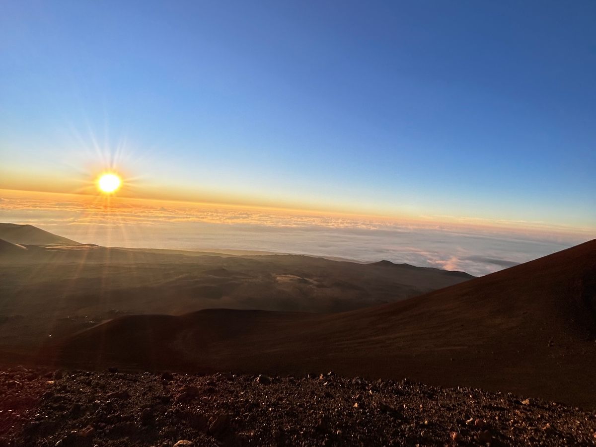 神聖なマウナケア山頂で観る朝日は格別で、心が洗われました。