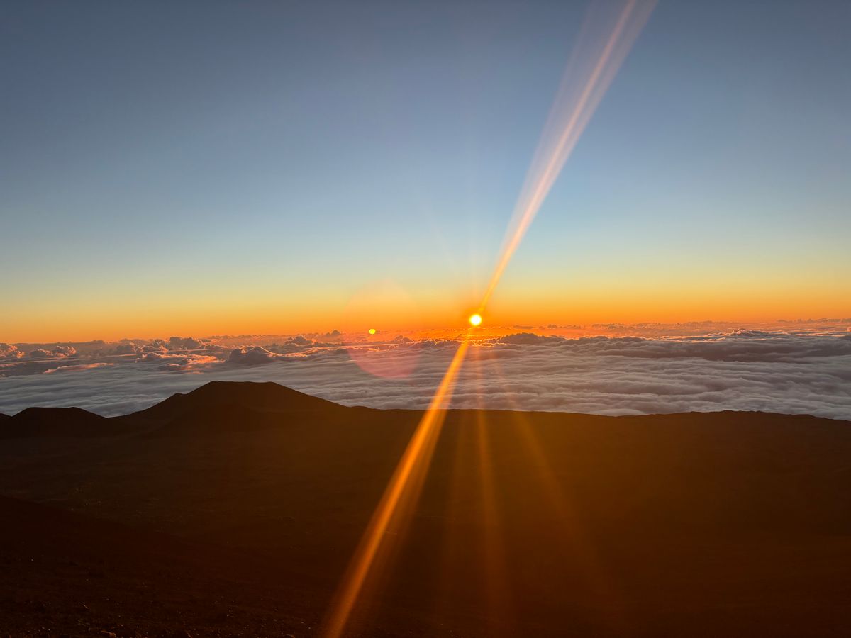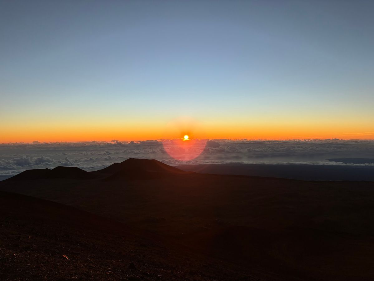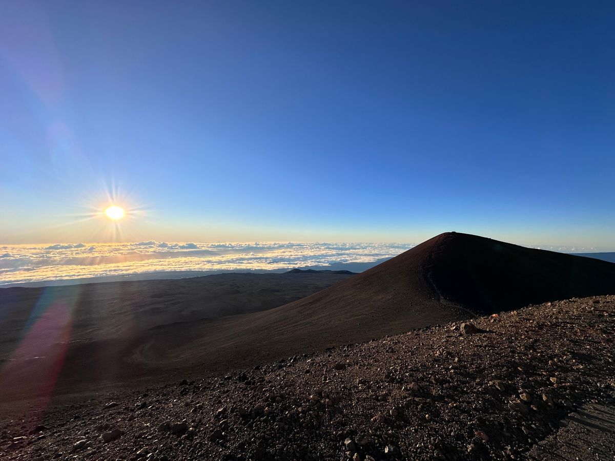 神聖なマウナケア山頂で観る朝日は格別で、心が洗われました。