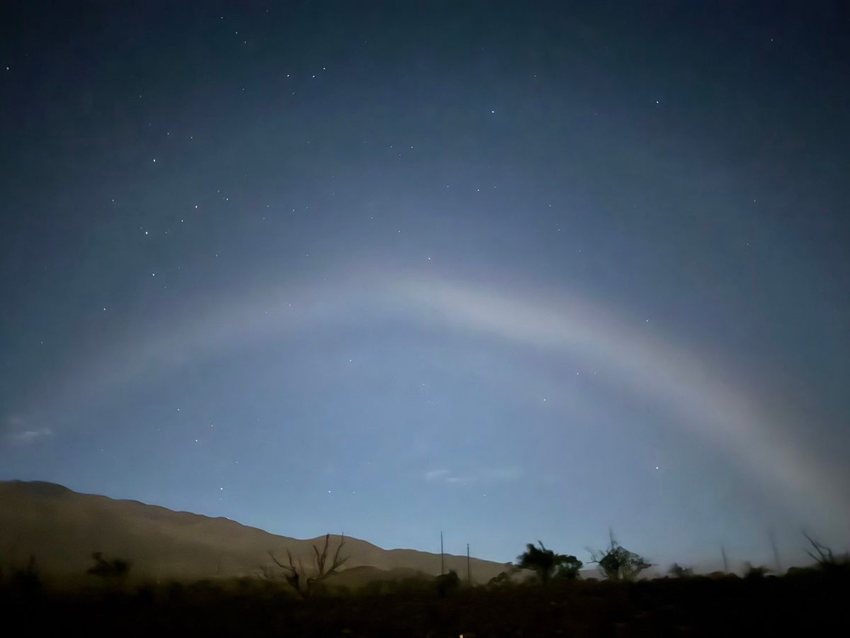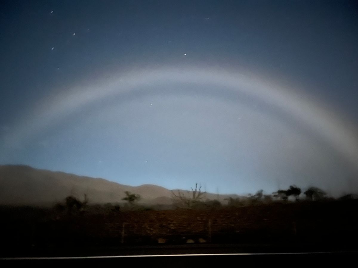 ムーンボウ(月の光でできる虹)というものがあることをはじめて知り、見ることができました!