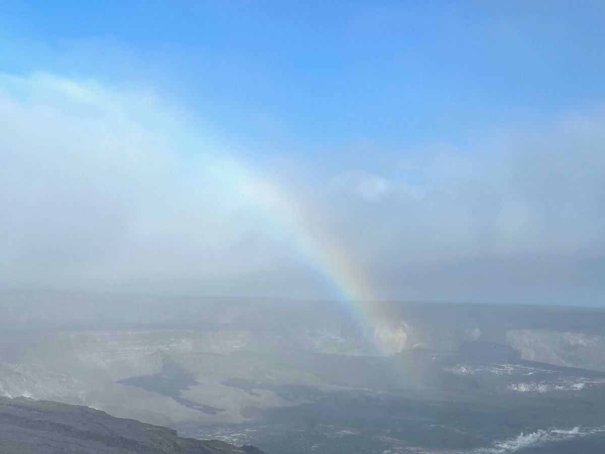雨の降りやすいキラウェア火山も少し降ったものの晴れ間も見え、虹がきれいに見れました。肌寒い山頂でしたが、上着も貸していただき寒さを凌ぐことができました。