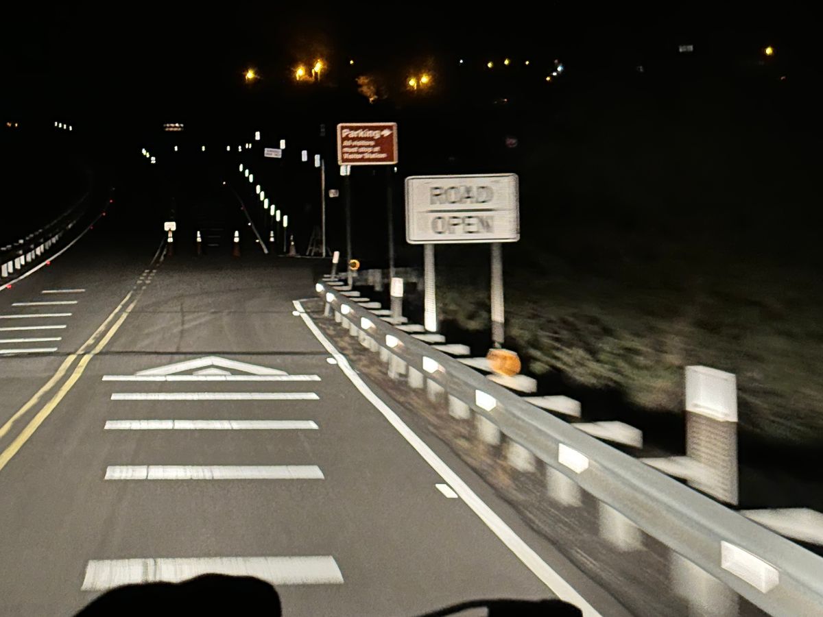 天気に恵まれ、オニヅカビジターセンターでは満点の星空、地平線から地平線まで続く天の川、流れ星が見られました。山頂の天候は異なり、そこから先の道が最初はクローズ。明け方にオープンになりましたが、朝日には間に合わず。