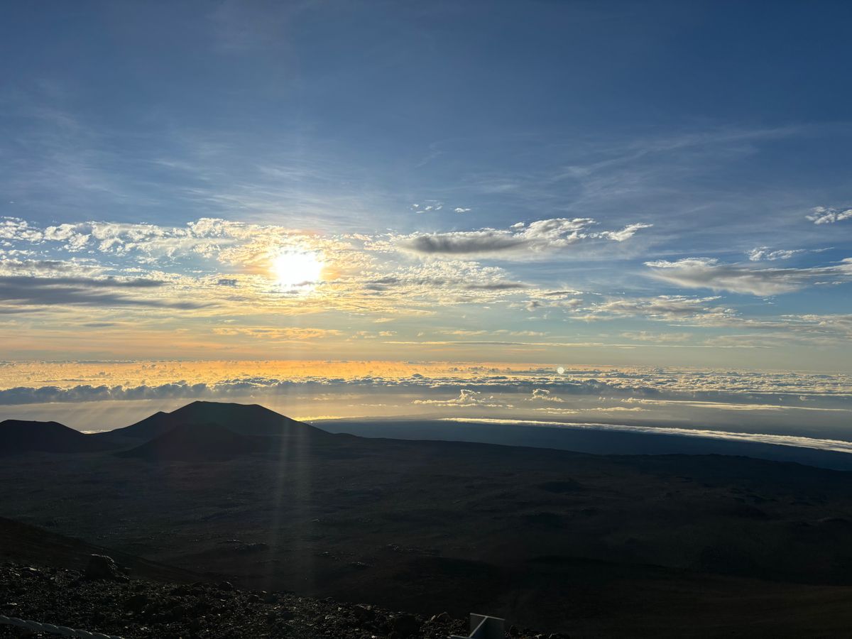 マウナケア山頂からの日の出を見られるツアーは1社しか催行されていないということで、当日、山頂にいるのはガイドさん含めて8人のみで、素晴らしい景色を存分に楽しむことができました。