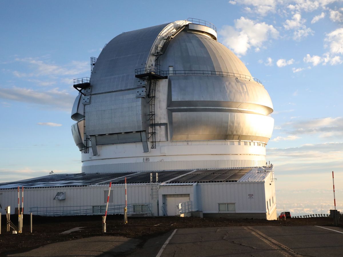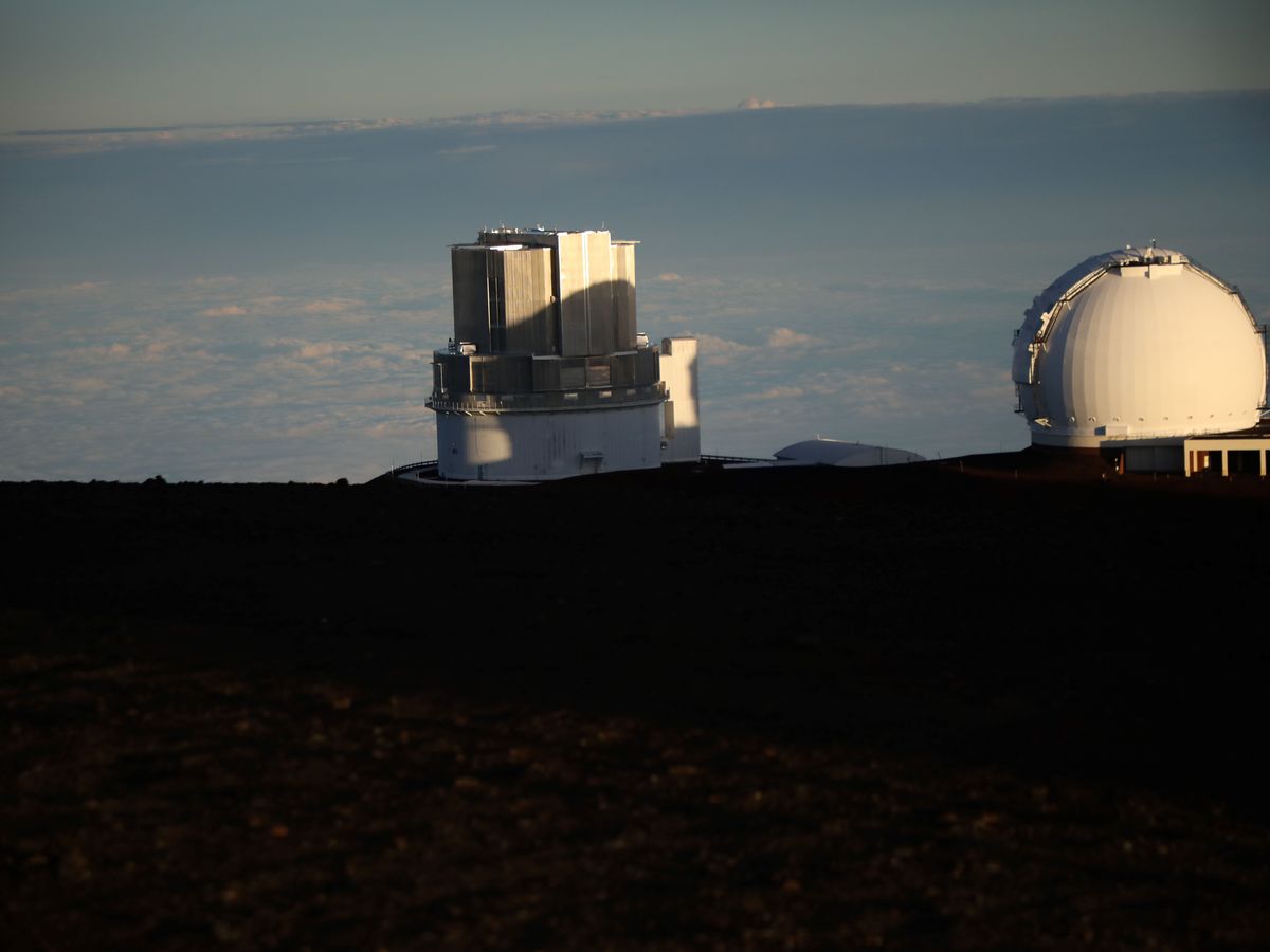 朝日に照らされたすばる望遠鏡が目の前に。