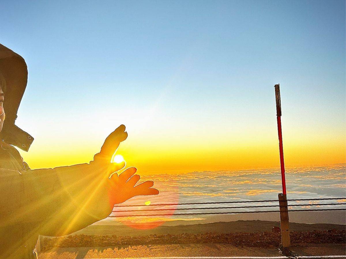 標高4207mのマウナケアで、天候にも恵まれ、目の前に広がる壮大な雲海とご来光にめちゃめちゃ感動!一度は見たいと思っていた日本のすばる望遠鏡も、間近で拝むことができ、最高の思い出になりました。