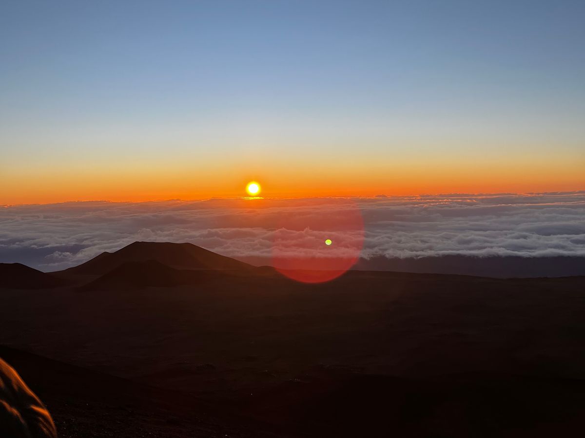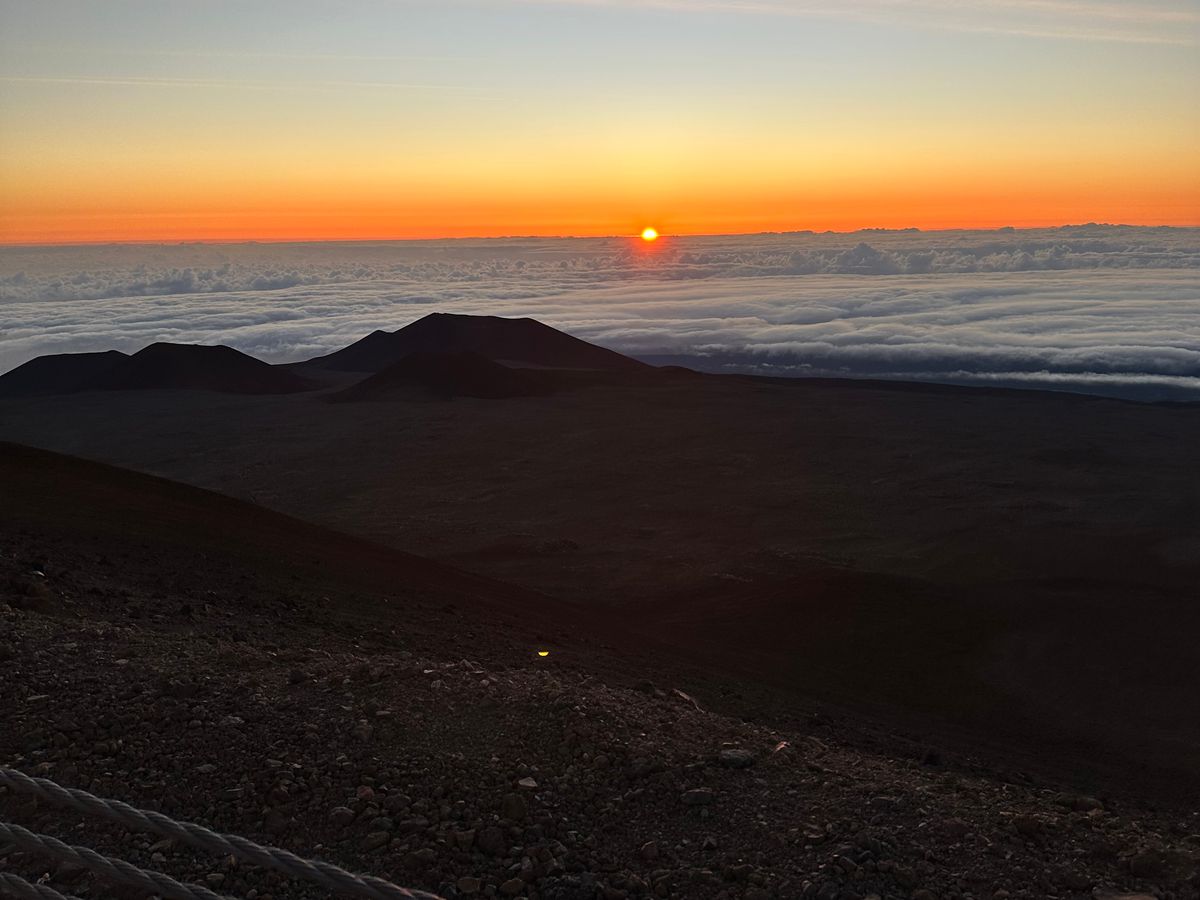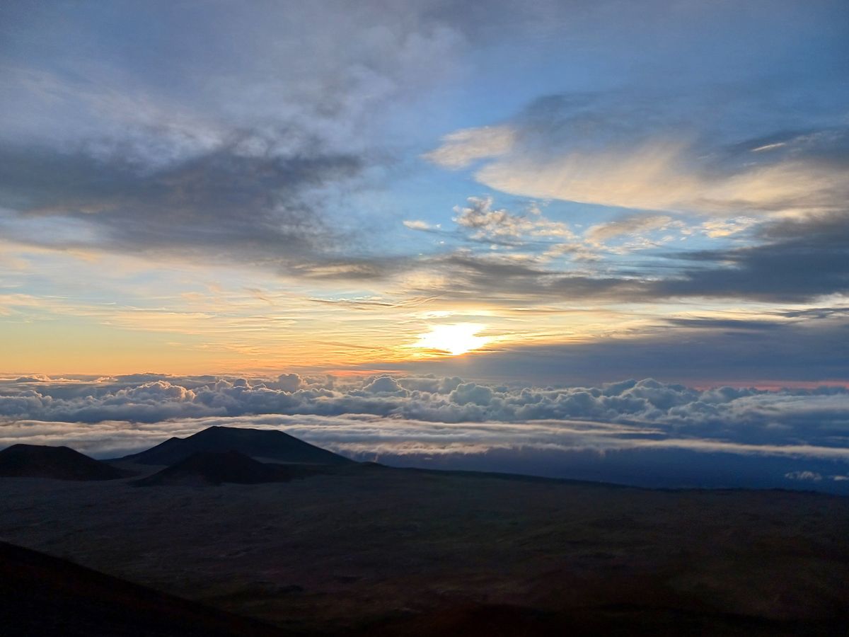 マウナケア山頂からの雲海の隙間からの朝日も、天文台を間近で見れたことも、天候に恵まれたおかげで最高の想い出になりました!