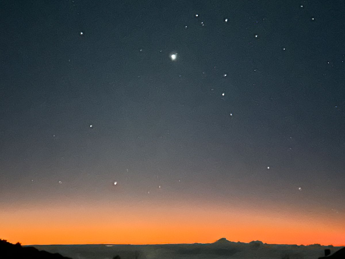 山頂は暴風とのことでしたがギリギリでクローズを免れてたどり着け、見事な日の出を拝めました。星空観測も素晴らしい解説のおかげで目一杯楽しめて、寒さ対策の防寒着の貸し出しもあり、高山病やトイレの対策もバッチリで終始快適なツアーでした。ココアもサンドイッチも美味しかったし、ガイドのアオキさんの細やかなお心配りや撮影もありがたく、とても良い思い出になりました。