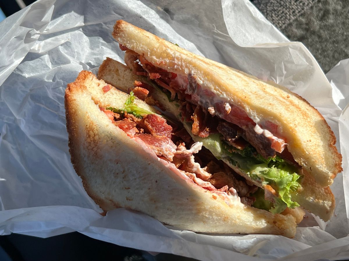 下山時の軽食(BLTサンドイッチ)は塩味が効いて美味しく、空港に帰る途中にお店に寄って再度味わいました。