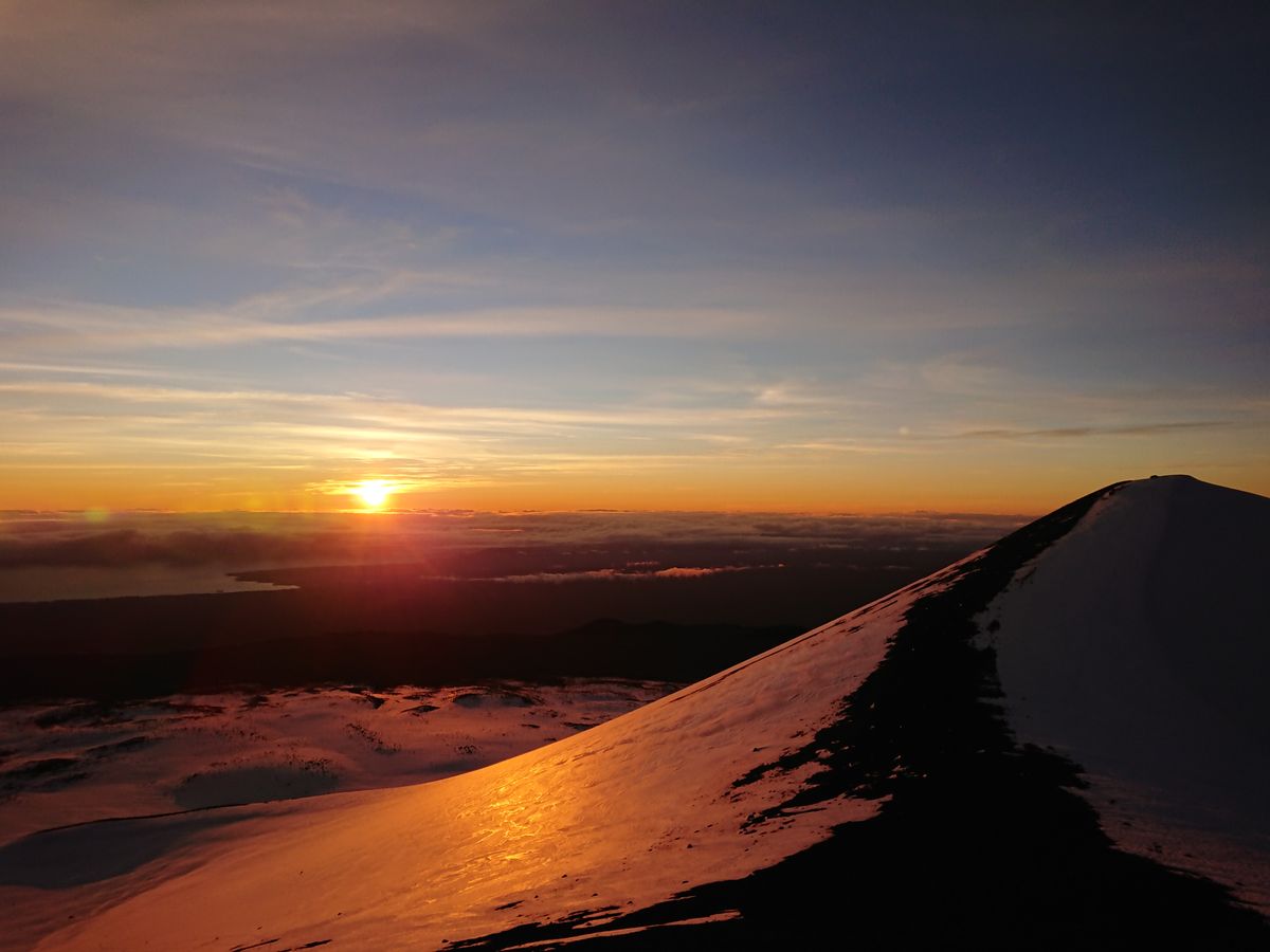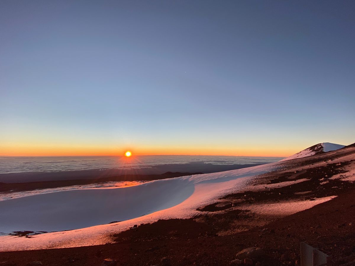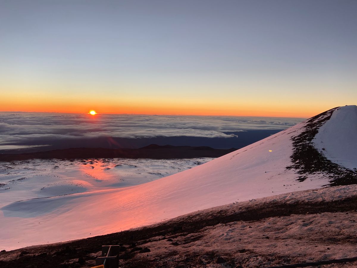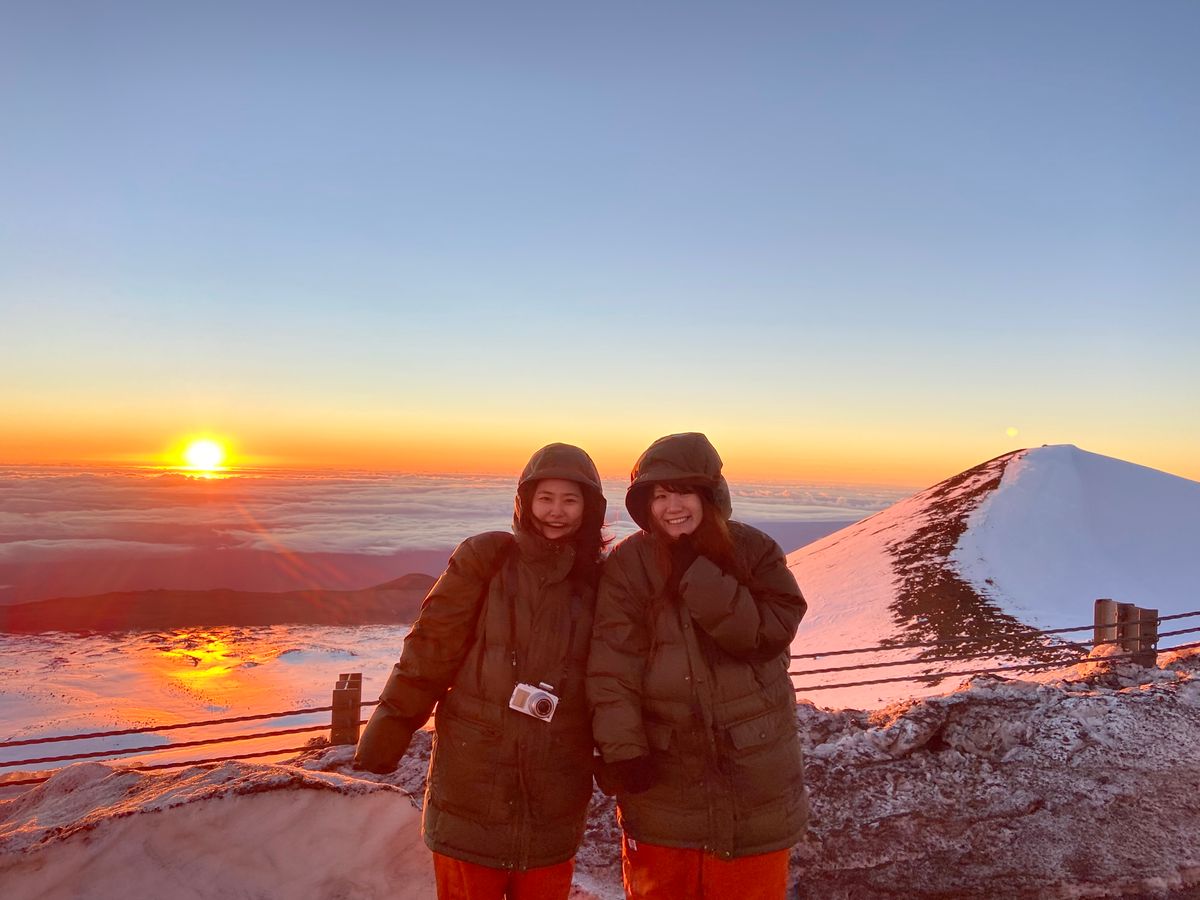 山頂はこの時期ならではのハワイでの雪も見ることができ、日の出は今までの人生で一番感動的な瞬間でした。本当に言葉を失うほどです!!