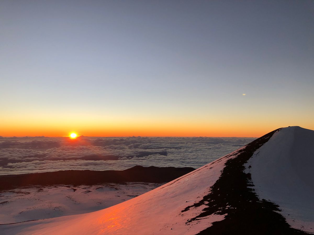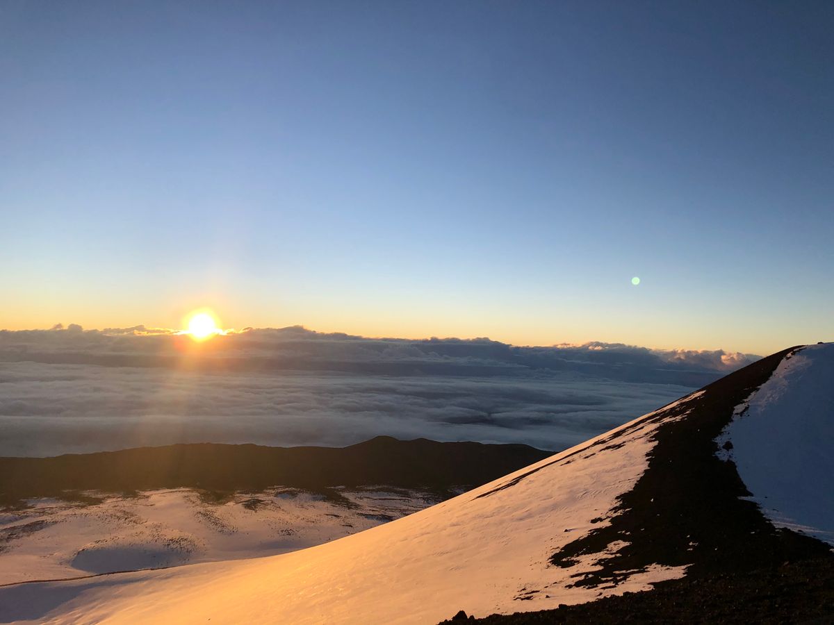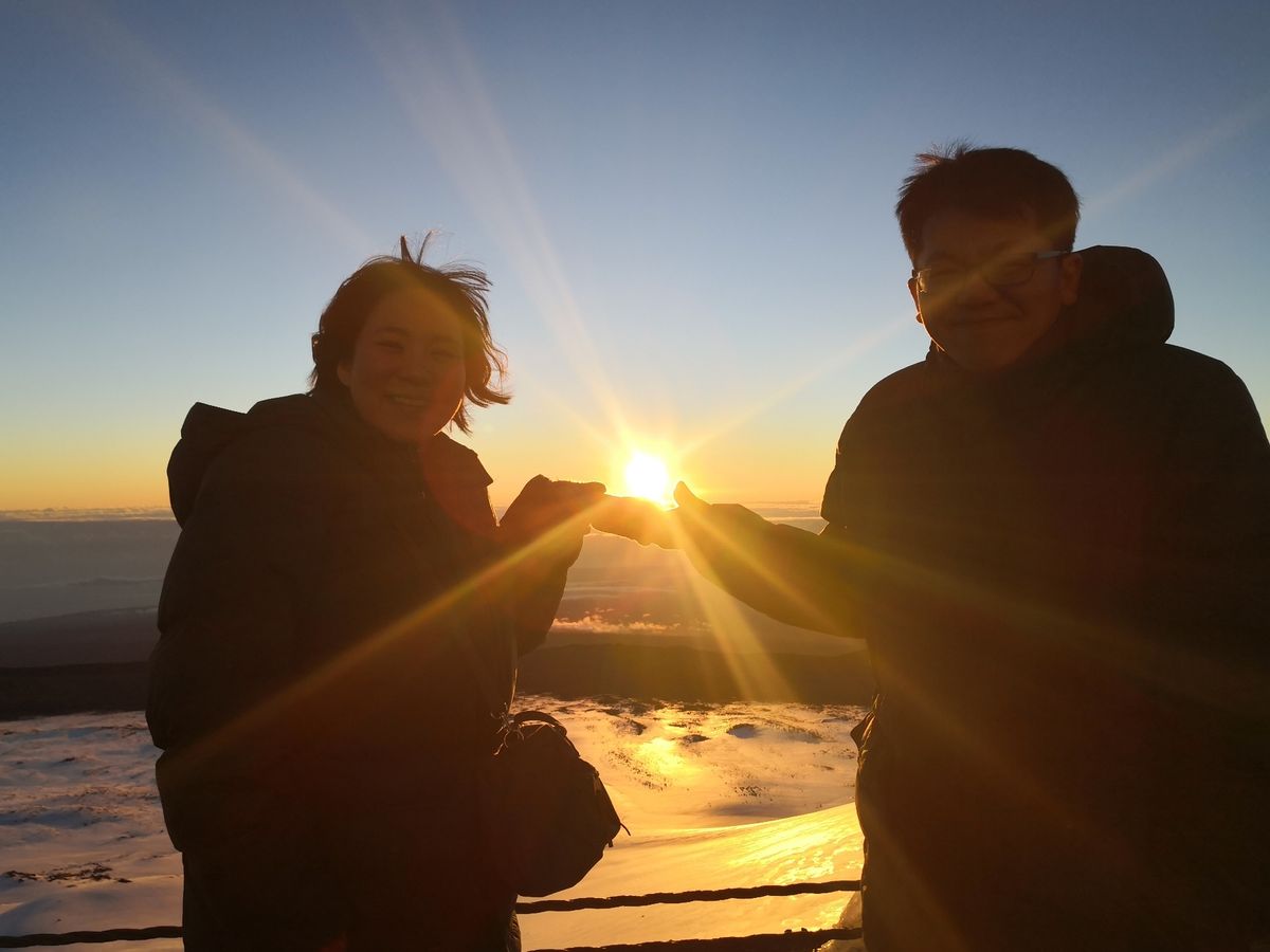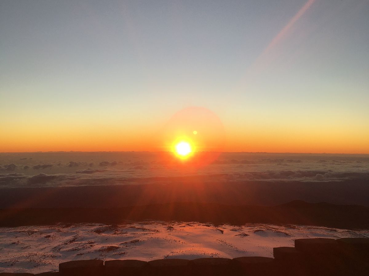 山頂はこの時期ならではのハワイでの雪も見ることができ、日の出は今までの人生で一番感動的な瞬間でした。本当に言葉を失うほどです!!