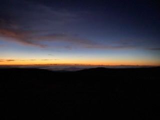 夜中の1時30分にホテルロビー集合のため、風邪気味だったこともあり、早めに寝て0時に起床。ガイドのアオキさんから車中で高山病にかからないための注意事項を聞き、体調が悪化しないか心配でした。途中の休憩場所で気温はすでに約10℃まで下がっていた。そこで防寒着を着込んでオニヅカビジターセンターで星空観察。月が沈んだ夜空は満点の星空!アオキさんがレーザーポインタで星を指して星座の名前を的確に説明してくれる様はまさにネイチャースクールです。そして東の空が朝焼けで白ずんできたのを合図に山頂を目指します。これは、あまり早く頂上へ行くと高山病にかかりやすくなるため、リスクを減らしてくれるアオキさんの配慮からです。ここからは、道が未舗装になり心地よい車の振動に揺られます。しかし、高山病にならないために深い深呼吸をしながら睡魔との戦い。山頂に着くと各国の展望台が立ち並び、すでに十数台の車と日の出を待つ人達がたくさんいました。そして待つこと十数分で待望の日の出を見ることができました。アオキさんが参加者の写真を撮ってくれました。酸素の薄さと寒さで日の出を見てすぐに下山。さすがに睡眠不足と酸素不足で頭が痛くなり、ホテルまでは寝ていました。