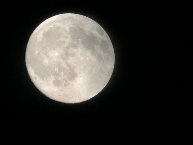 満月だったので、空が明るすぎて天野川は見えませんでした。「次は月齢が少ない時に来るぞ!」と誓いました。ガイドさんは親切で、天体望遠鏡で見える月をiphoneで撮ってくれました。