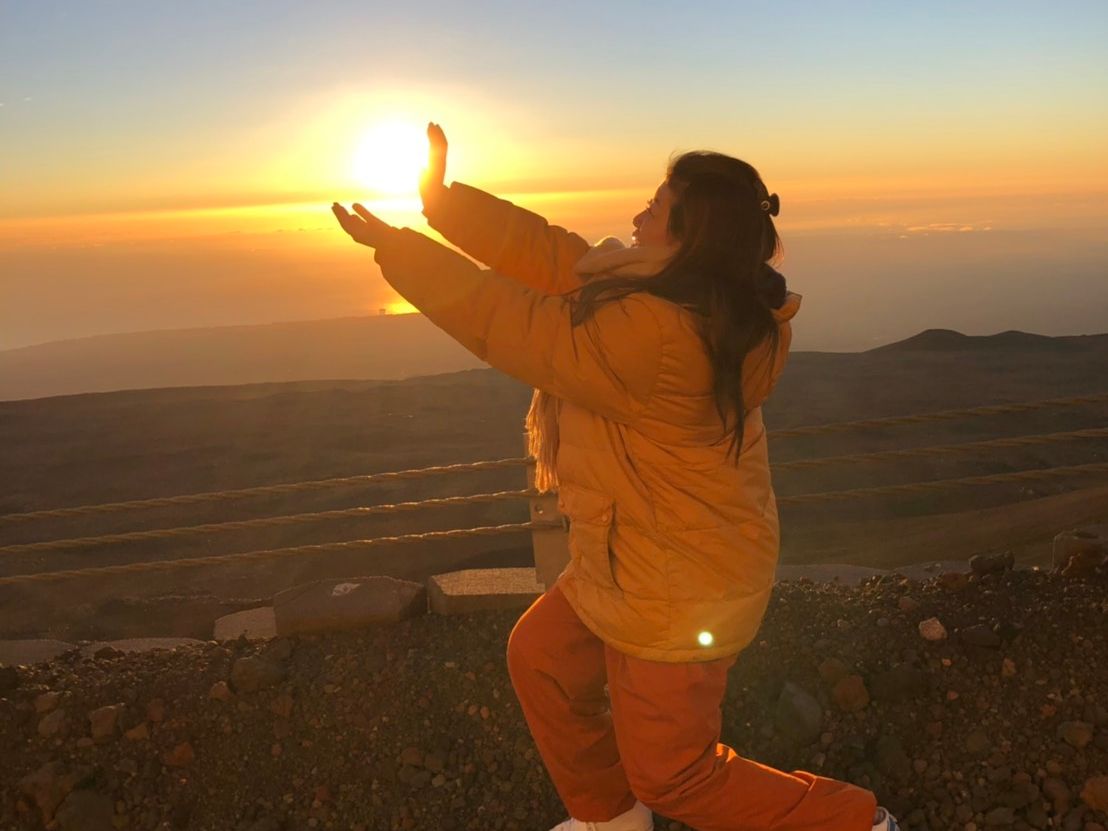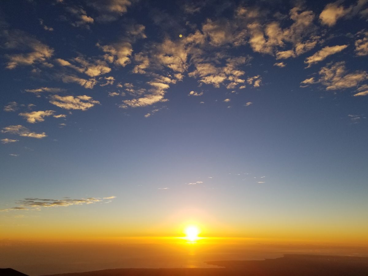 高山病も心配していましたが、ガイドさんの注意事項を聞いて、オニヅカで星を観測しているうちに環境にも適応。問題なく山頂まで行って、朝日を見ることができました。雲が多い日でしたが、それもまた幻想的で、なんとも言えない光のグラデーション。月、星、太陽を見て、心が洗われ、改めて自然の偉大さを実感しました!なかなか体験できないことです。ぜひ、ハワイ島でしか味わえない光景を目に焼き付けてください。
