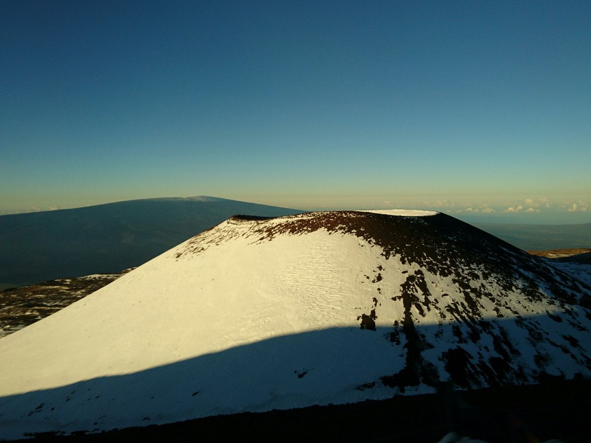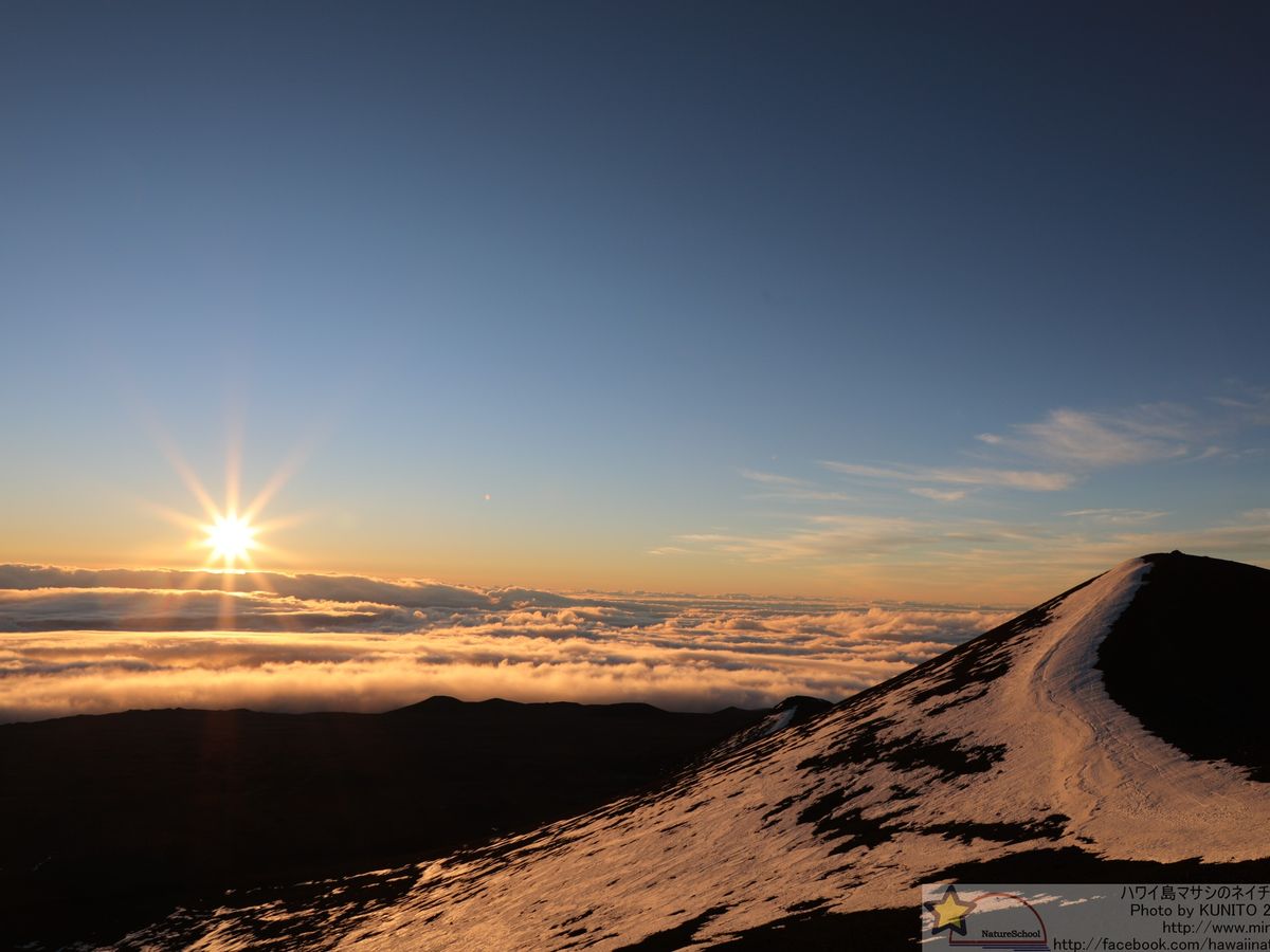 まず山頂の日の出ツアーですが、前日までは雪で山頂までの道がclosedだったにもかかわらず、参加の半日ほど前に運よくopen。途中のオニヅカセンターでは月あかりが気になったものの、月が沈んでから明るくなるまでの10分から20分程、満点の星空を見ることができました。星空の撮影ができらたいいなと星空撮影用のカメラをレンタルして行こうかとも思ったのですが、三脚や腕前が必要なことが分かって断念。しかしながらガイドさんが自前のカメラ(おそらく相当高級な)で撮ってくださり、しかもダウンロードサービスまであり、何より嬉しいおみやげになりました。12歳の息子は神話が好きなのですが、いつも母に話してもスル―されていた話をガイドのヨウさんがしっかり拾ってくださり、星座を見ながら一緒に神話の話ができた息子も大満足でした。そして山頂へ。雪の残るマウナケアと朝日のコラボ、すばらしかったです。少しでも寝ると高山病になるよ!頻繁に声掛けもしてくださり、ホスピタリティがすばらしかったです。