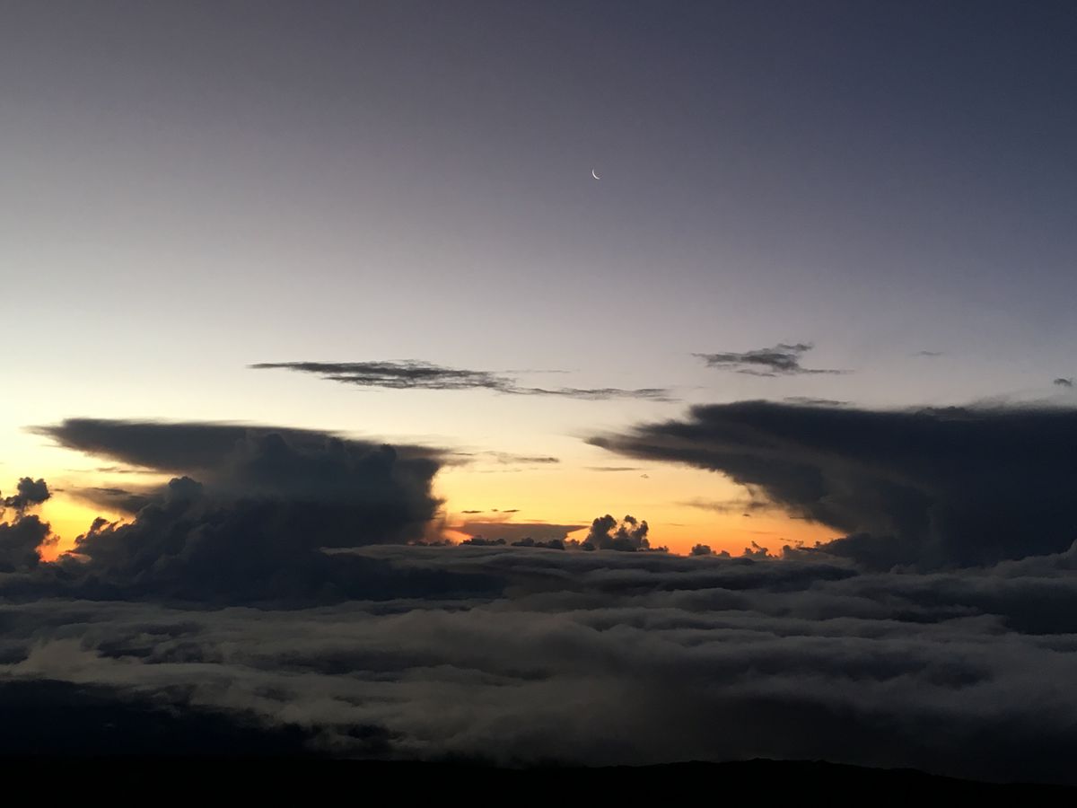 天候に恵まれ、満天の星空でした。8年前はサンセットでしたが、満月で、ほとんど月しか見えなかったのです。が、リベンジの今回は、肉眼で見える空の星ぜーんぶ見た感じで、天の川も見えたし、こんなに星があったのかと心底驚きました。途中、低血圧だったのか気分が悪くなりご迷惑をおかけしましたが、休んでいたら回復して、山頂での日の出も無事見ることが出来ました。