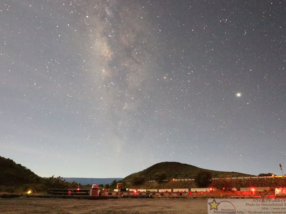 星空観測では、幅の広い天の川に加え、キラウエア火山が真っ赤に見えました。すごいです!!!流れ星もたくさん。