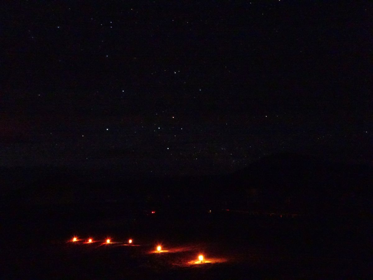 最初の星空では、真っ暗で人の顔も足下も全く見えず、目が慣れるまでは歩くのが怖かったです。