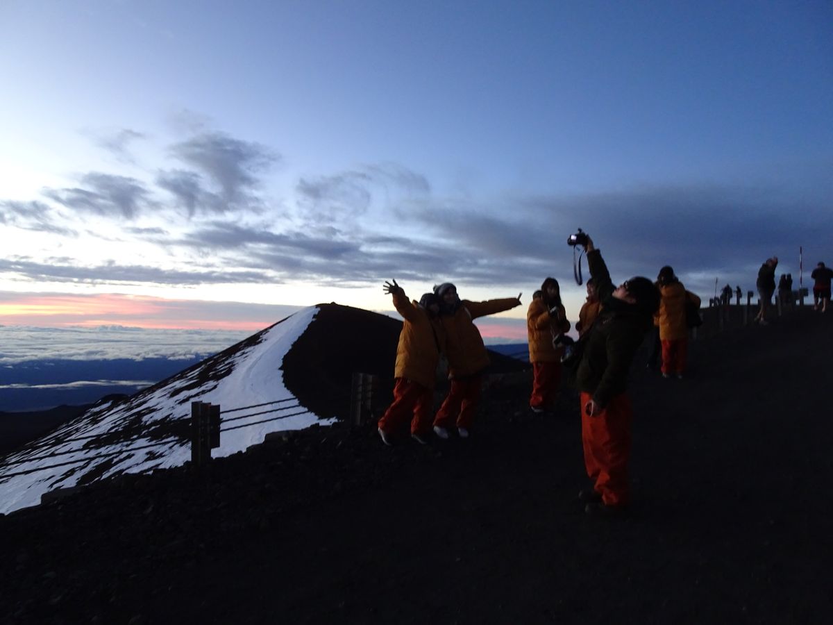 朝2時40分ホテルのフロントで集合。時間通りにガイドの方が到着し、スタート。途中のオニズカセンターで星空観測。まさに天然のプラネタリウム。ポインターを使って星座のイメージを全員で共有。寒いという噂で、かなり準備をしたが、ツアー手配のウエアでも心配なし。そして、いよいよクライマックスのサンライズ。サンライズに集まるのは日本人ばかりとのことだったが、やはり7割がた日本人観光客だった。朝日は圧巻。最高の経験になった。さすがに、山頂は風が激しく、その分体感温度は厳しく、ここではもう一段の防寒準備の必要性を感じた。帽子の準備があればいいと思う。