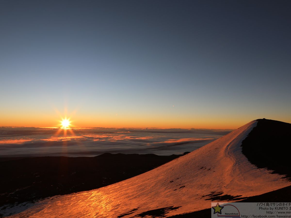 月の明かりが無い新月の快晴で、4日前まで荒天でクローズされていて山頂まで行けなかったとか。参加日翌日は土砂降りの雨で、本当にラッキー。天の川が縦に二本に見えるという。これもここまで条件が揃ってのこと。しかも遠目にキラウエア火山の赤い火口が見え本当にサイコー。そして、劇的なサンライズもしっかり見えました。富士山より高い4,000mへ1.5時間で車で行けるという世界で唯一の場所。ハワイでマイナス20℃の体験もそれはそれで良かったです。