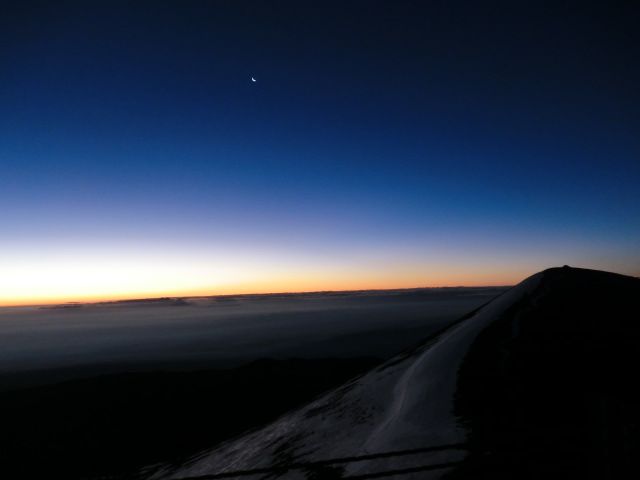 天気がとても悪く、頂上に行っても月しか見えず、そのうち月見えなくなってただただ眠気がやってきました。