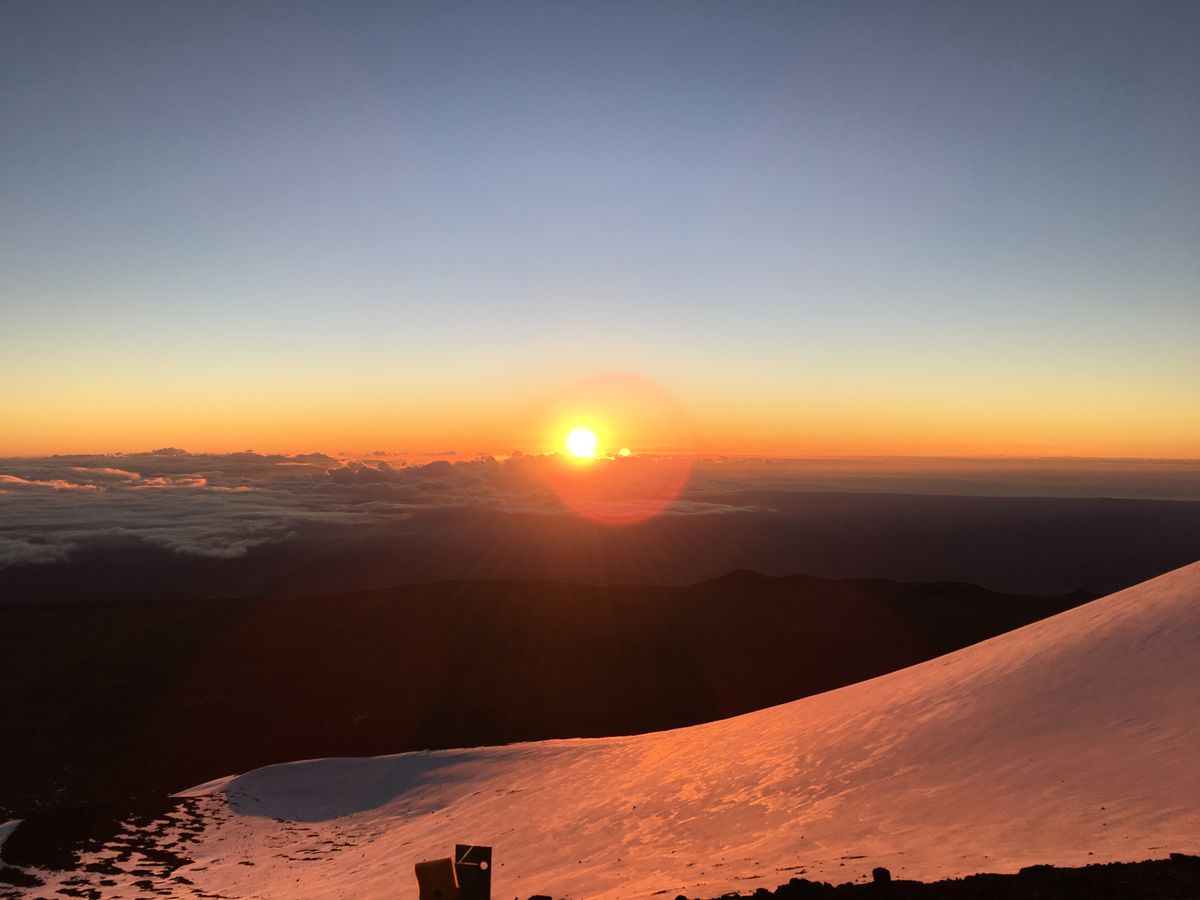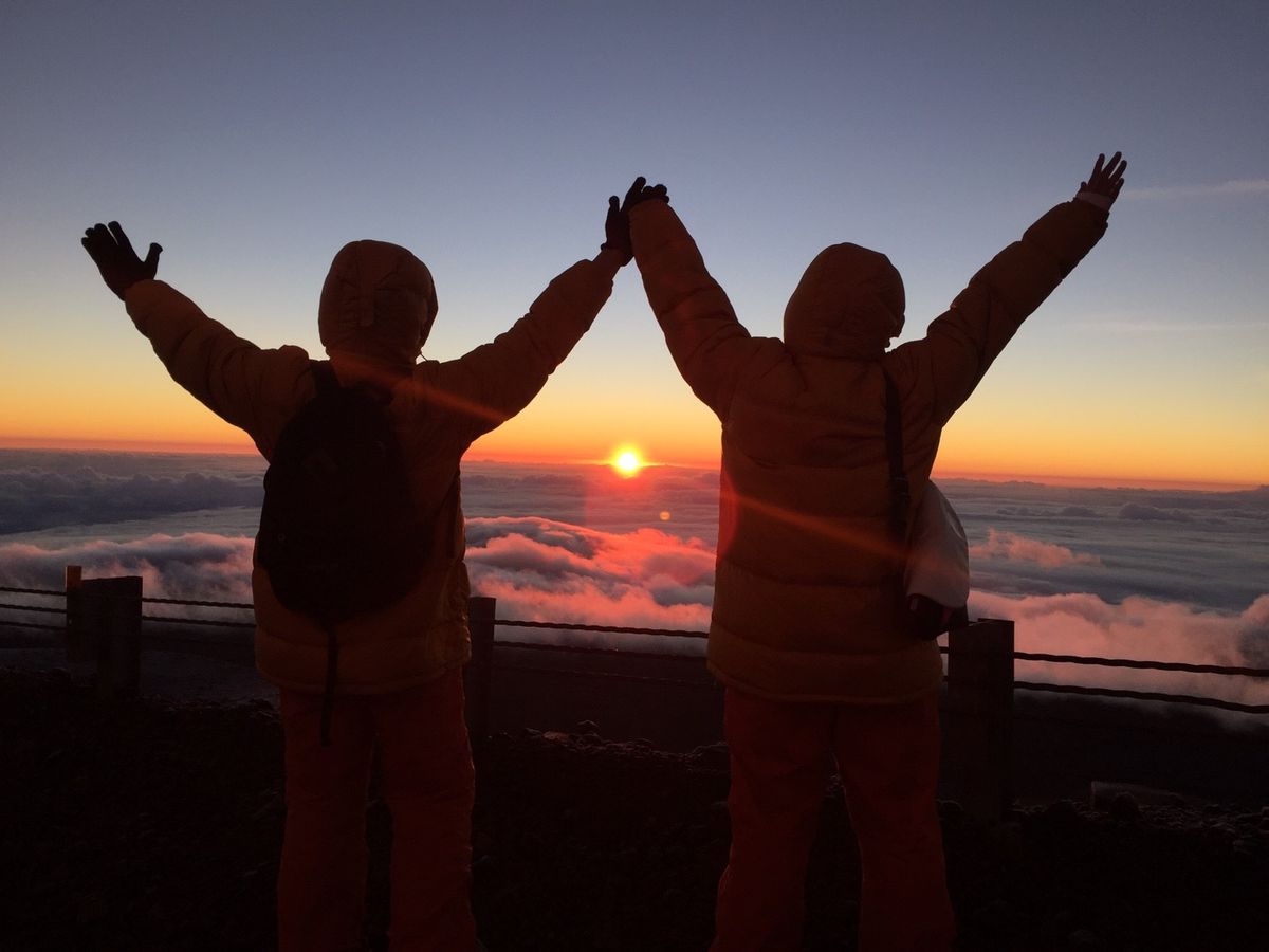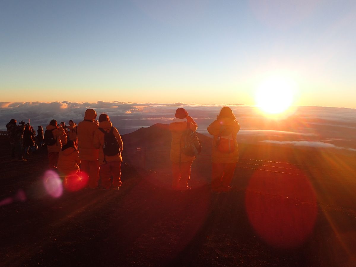マウナケアの山頂で見るご来光は本当に綺麗ですよね。太陽が上がってくる瞬間と上がってきて回りが暖かくかくなってきて、太陽の暖かさを実感できます。