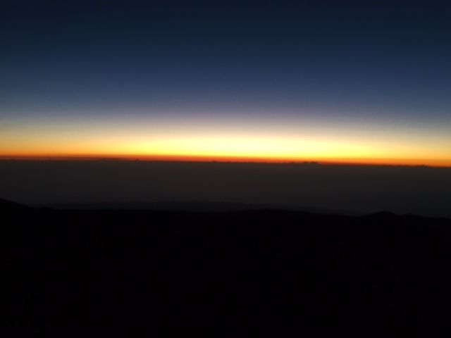 山頂のお天気が悪かった日だったのですね。山頂のあたりの高層雲がなかなか引かなかったのですね。なんとか日の出は鑑賞できてよかったです。