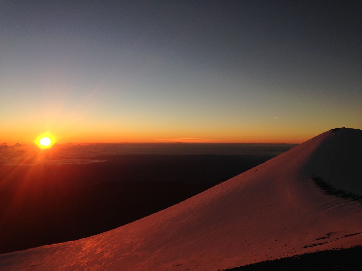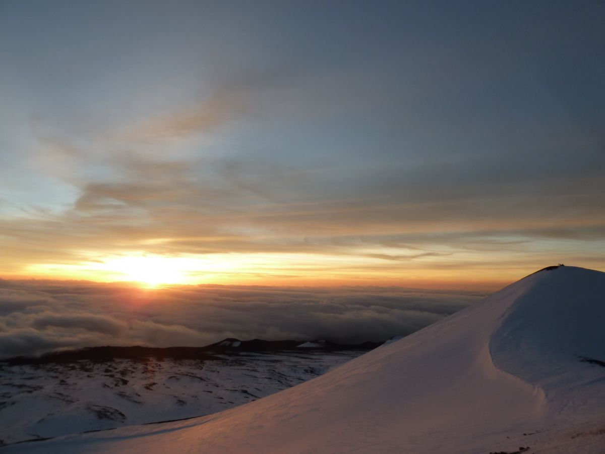 マウナケアでの日の出は本当に素晴らしいですね。張り詰めた空気が太陽が上がってくるときには太陽の暖かさが身に沁みます。