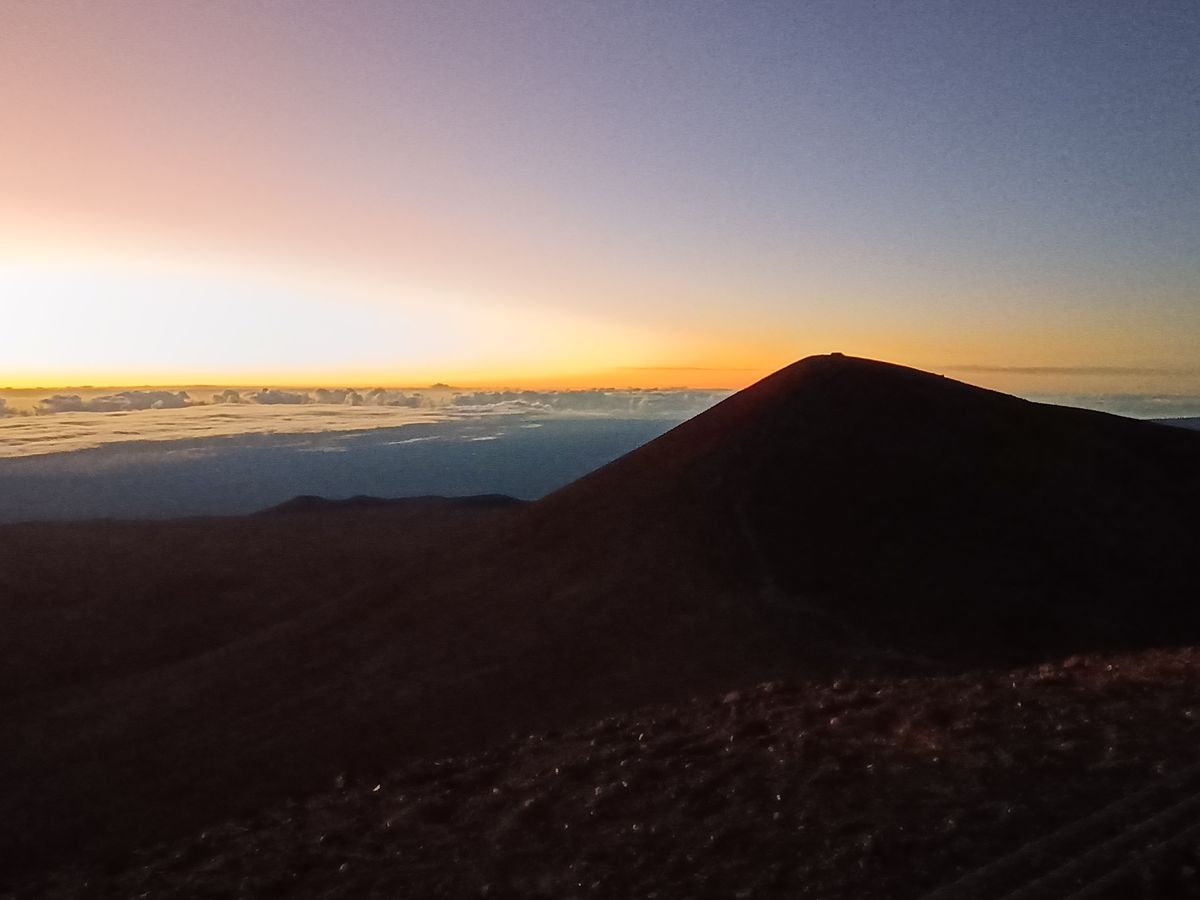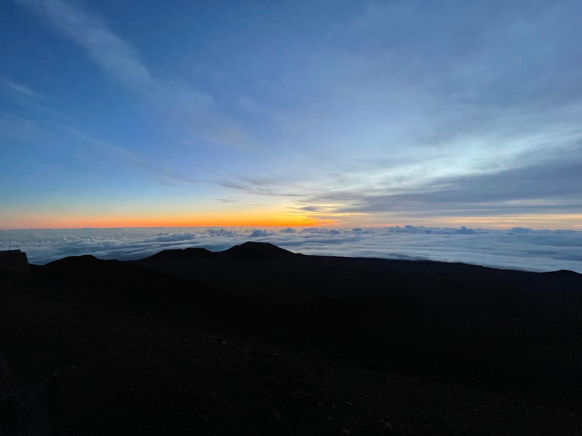 ツアー前半はアオキさんのガイドでマウナケアへ。大型ハリケーンの接近で登頂が危ぶまれましたが、お天気はびっくりするほど快晴で、神々しいサンライズを見ることができました。