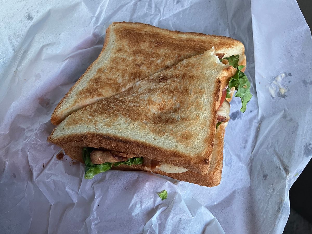 帰路でいただいた塩見の効いたなサンドイッチも体に沁みました、美味しかったです。