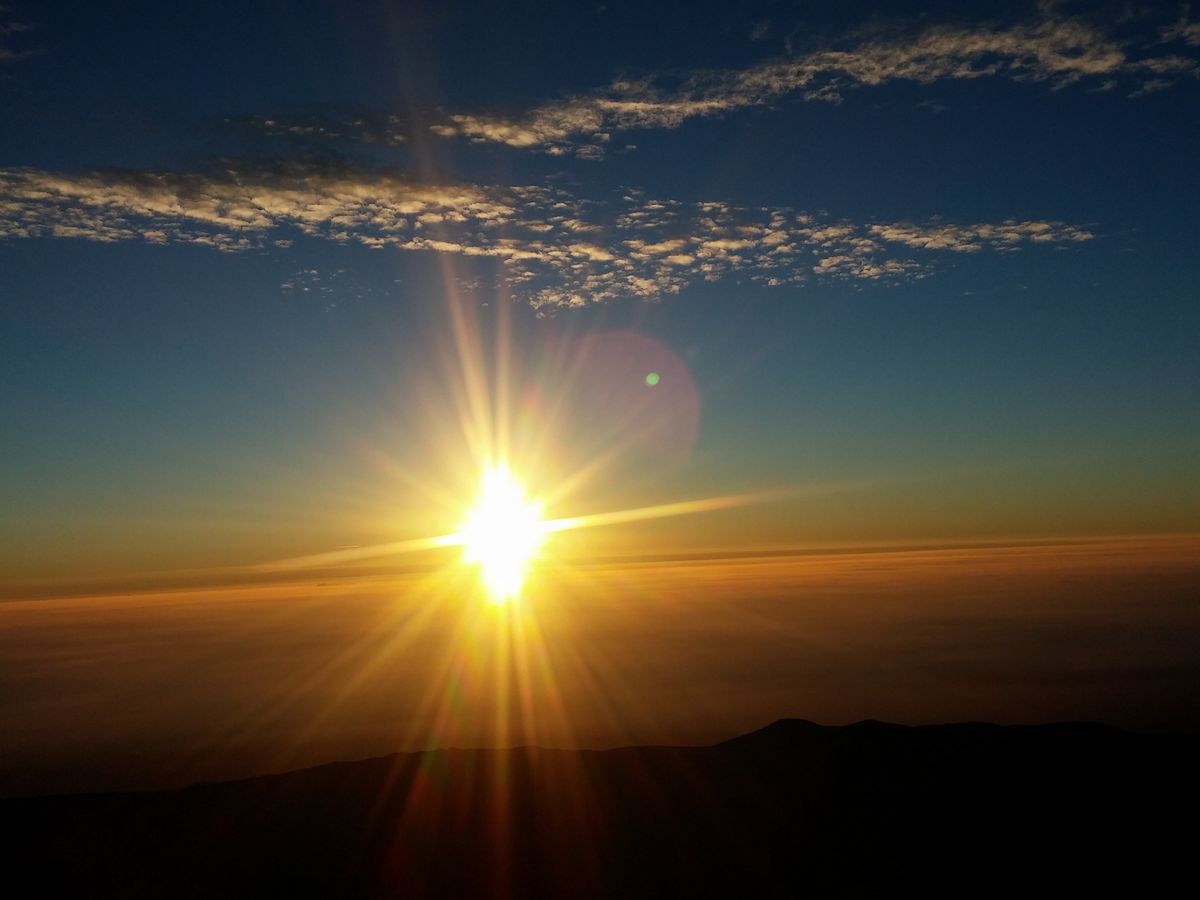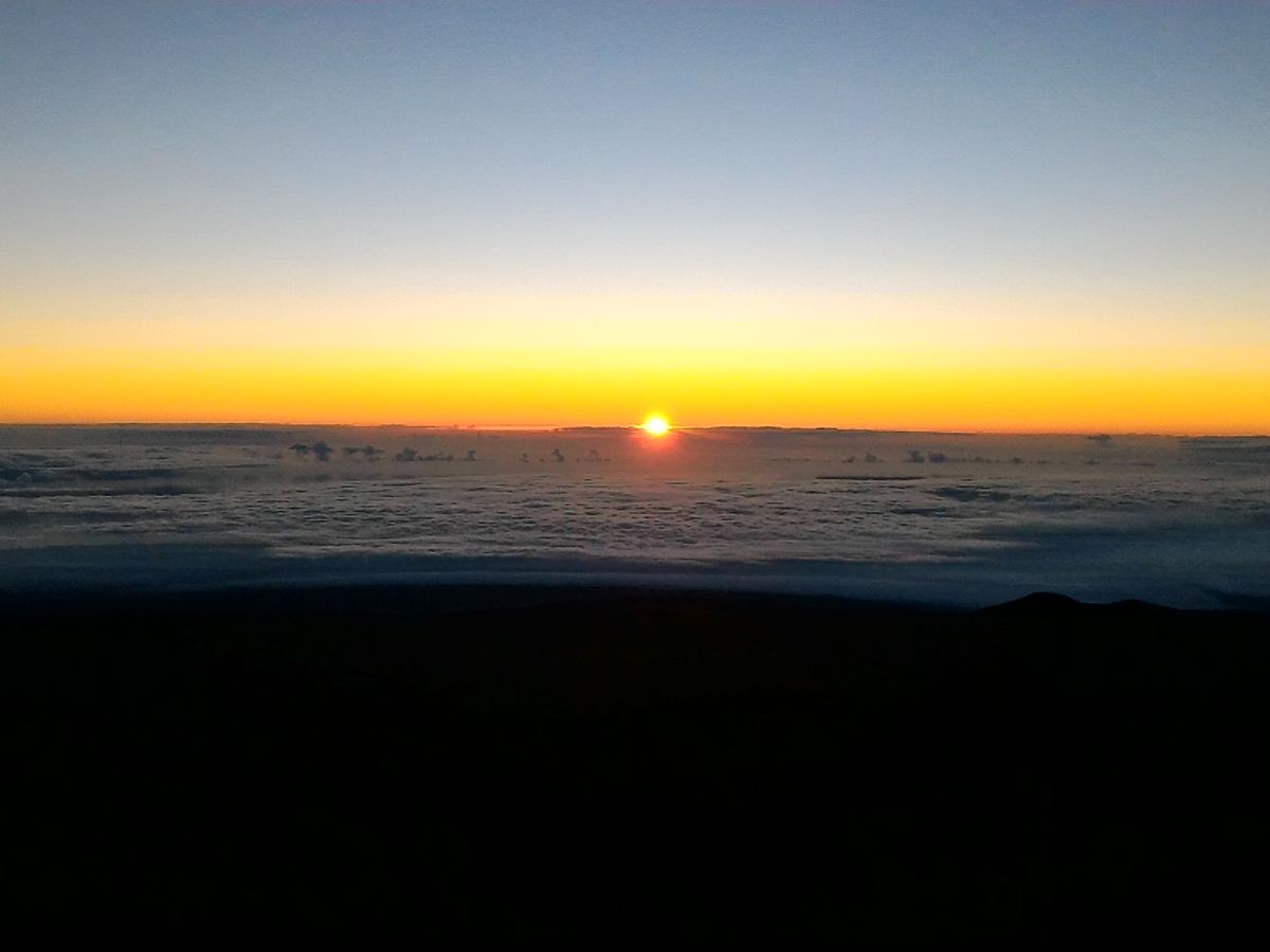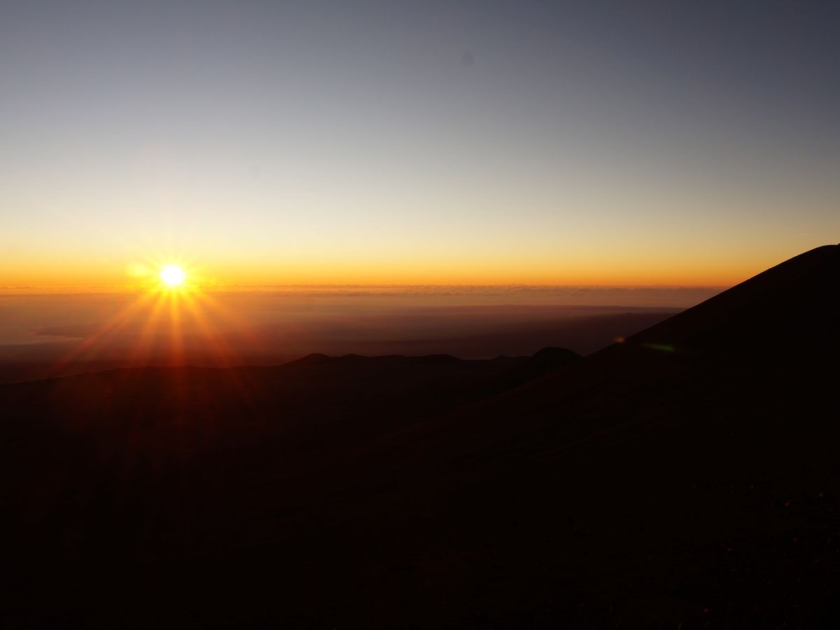 マウナケアの山頂での日の出は本当に心に澄み渡るようですね。明け方はとにかく寒いですが太陽が昇ってくる瞬間は暖かい空気が
