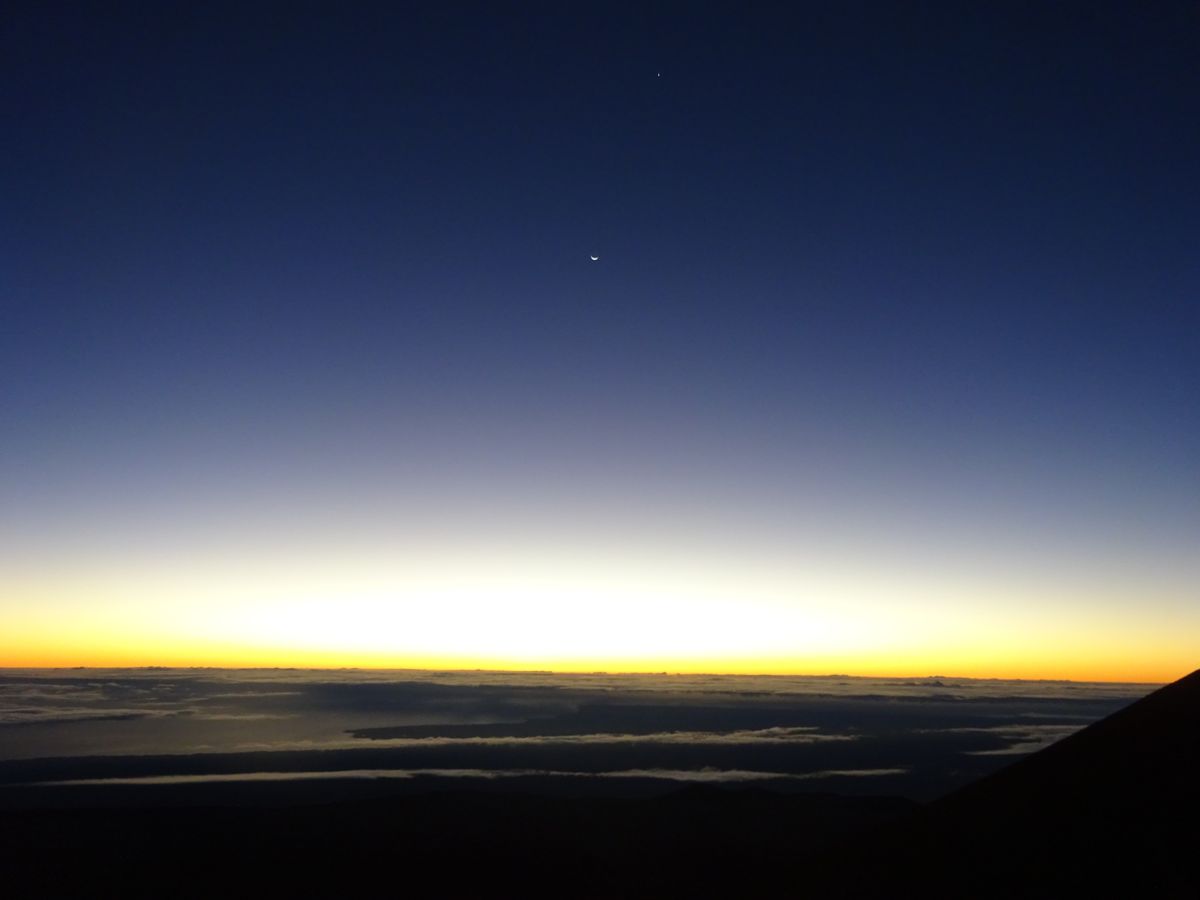 山頂には多くの観測所があり、世界中よ研究者の憧れの場所だとか。そんな話を聞きながらゆっくりゆっくり太陽が出てくるのを眺めていました。