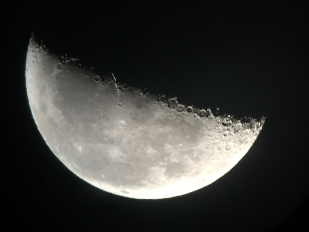 月のクレーターを望遠鏡から観察&iPhoneにて撮影実施。