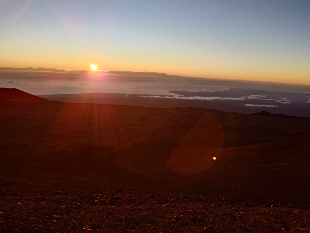 満点の星空にマウナケア山頂の日の出は、今まで見たことない景色で心が震えました。
