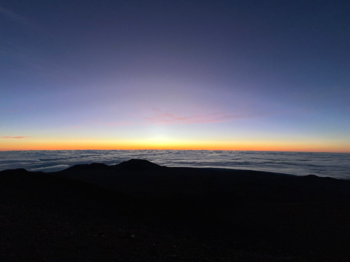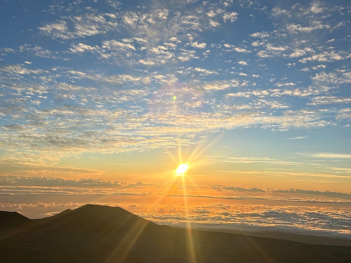 そして富士山より高い標高の山頂から臨む日の出は、ヒロ方面に広がる雲海から昇り、とても美しかったです。