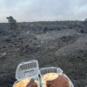 キラウエア火山の近くでピクニック、そこで食べたロコモコが絶品で美味しかったです!