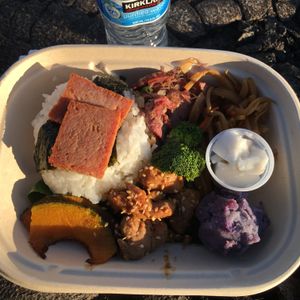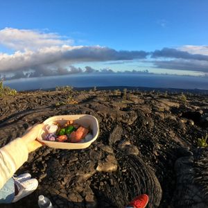 キラウエア火山の溶岩の上で食べたハワイアンのお弁当も美味しかったです。