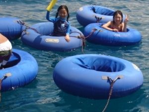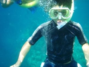 2家族で参加しました。英語のツアーなので不安でしたがバウチャーがあれば、受付で困ることはありませんよ。乗船してからもスタッフが優しいので安心でした。船は停泊したのは、水深8M位のところ。シュノーケルを始めたもののアップアップしてしまい始めは不安でしたが慣れてくるとお魚を見たりちょっと潜ってみたり・・・