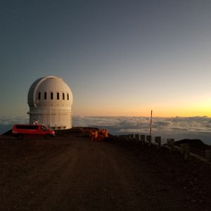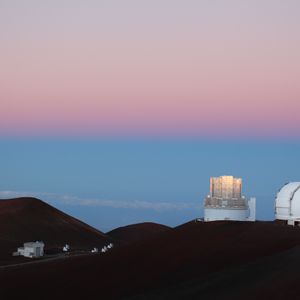 そして、4200mの山頂でのサンライズ。夜明けが近づくにつれてオレンジ色の朝焼けが広がり、天頂付近の濃紺の空に続く光のグラデーションの美しさに感動しました。遠くの雲海から登る太陽は白く輝き、様々な光を放つ様子からは、新たな星の誕生を感じました。また、山頂の天文台群。その中でも、朝焼けに映えるすばる展望台は存在感がありました。