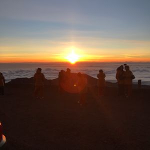 高度順応の待ち時間での星空観測で、空一面の星空に心底感動し、富士山より高いマウナケア山頂まで車で登頂でき、雲を下に見ながら日の出を待ち、いよいよ日の出で空がオレンジなり、一筋の光が届いた時の感動…凄かったです!
