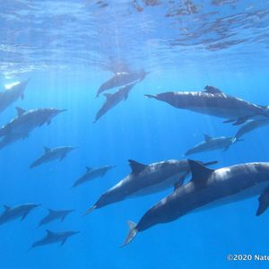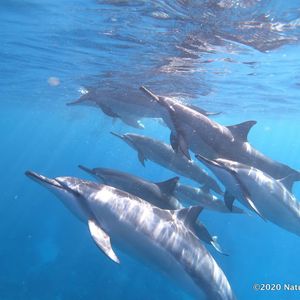 出発直前はウミガメがすぐそばで見られラッキー!と思っていたら、海に出てみると、なんと20頭以上はいるか思われるイルカたちの中で泳ぐことができました❗️イルカの声?も聞こえ感激!!