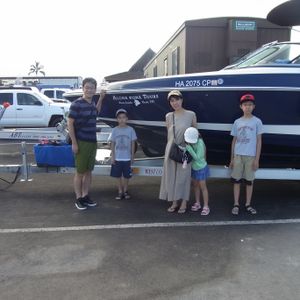 ボートのスピードが速かったので少し怖かったですが、楽しいツアーをありがとうございました。出港してからすぐに目の前をイルカが泳いでいる光景は忘れられません。日本人女性ガイドさんからのハワイ島の周囲に生息する海洋生物の説明は大変勉強になりました。