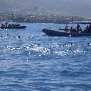 出発前には「イルカと出会えるポイントまで40~50分程度」と言っていましたが、ラッキーなことに出発して5分でイルカの群れに遭遇!早速潜ってイルカとの最高の時間を過ごすことができました。終始ダイスケさんのイルカに対する想いと、その魅力を伝えたいというエネルギーに触れられ大満足です!ハワイに行く際には、また参加します!