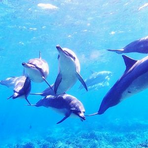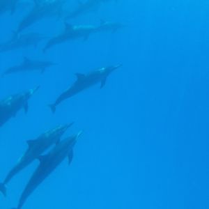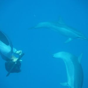 1度のダイブで数回、イルカと泳ぐ事ができました。