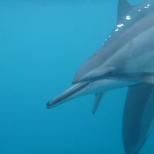 イルカを間近で見るのは初めてで、すぐ目の前を何度もイルカ達が横切りました。もっと、深く潜って、イルカ達を追いかけるように泳ぎたい気持ちはあったのですが、泳ぎが下手で、浮き輪に捕まって眺めるしかできませんでした。