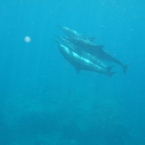 その後、何度もイルカ達の集まるスポットに船で移動し、海に飛び込みましたが、イルカ達は海底を凄いスピードで移動中。なかなか一緒に泳ぐチャンスは訪れませんでした。イルカと一緒に泳ぐのはなかなか簡単ではない事が分かりました。